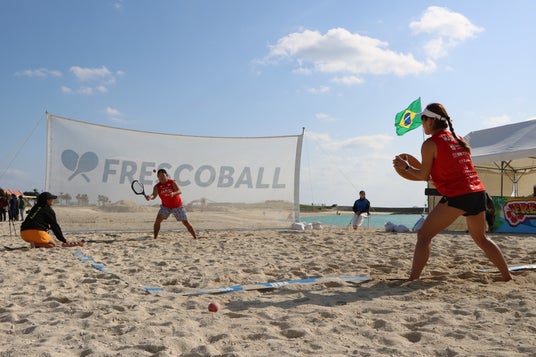 フレスコボールは、ブラジルのリオデジャネイロ発祥のビーチスポーツです。1945年にリオ・デ・ジャネイロのコパカバーナビーチで考案され、現在は世界各地のビーチで親しまれるようになっています。フレスコボールの最大の特徴は、向かい合う2人が競い合うのではなく、協力してラリーを続ける採点競技という点。一般に競技時間は5分間、7mの距離を保って試合を行います。協力してラリーを続ける様子から「思いやりのスポーツ」とも言われ、2025年1月現在、日本全国で27のJFBA公認地域クラブと4の公認学生団体が設立され、フレスコボールを通じた地域コミュニティが形成されています。