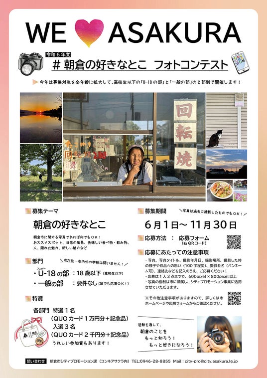 ・朝倉市シティプロモーションマガジン「コンネアサクラ」等での紹介時に、応募者へ取材する場合があります。