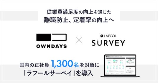 株式会社ラフール(本社:東京都中央区、代表取締役社長:結木啓太、以下「ラフール」)は、メガネ・サングラスの製造販売を手掛ける株式会社オンデーズ(本社:東京都品川区、代表取締役社長:海山丈司)が、国内の正社員1,300名を対象に同社が提供する組織改善ツール「ラフールサーベイ」を採用したことお知らせします。「ラフールサーベイ」を活用し、従業員満足度の向上を通じた離職防止、定着率向上を促進します。
