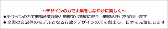 1.多くの人や組織がデザインの力を生かして身近な課題に取り組み豊かな地域社会を形成する「デザイン先進県」を構築します。