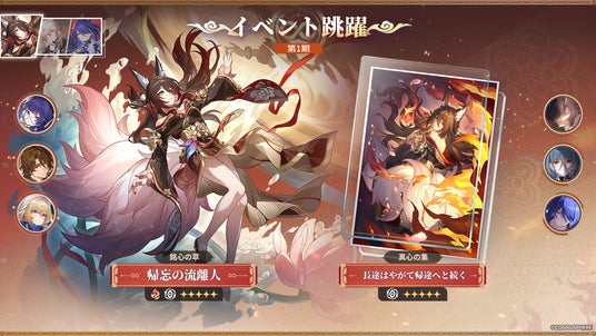 また、同時開催のイベント跳躍・光円錐「真心の集」では「長途はやがて帰途へと続く」、「幾度目かの春」、「流れ逝く岸を歩いて」の出現率がアップ!ぜひお見逃しなく!