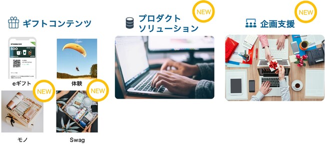ギフティの主力商品であるeギフトおよび従前から提供していた体験ギフトに加えて、良質なモノやそれらを詰め合わせたギフトBox、ロゴや社名が入ったオリジナルグッズ「Swag(スワッグ)」(※4)の提供を新たに開始いたしました。