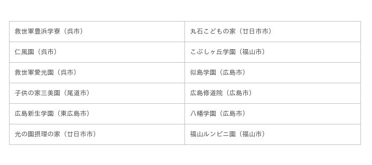 ・広島県内の社会福祉法人として組織化されている児童養護施設(12施設)