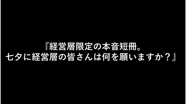 今回は、7月7日 七夕に際して、普段は経営に徹し、本音を言いづらい経営層の本音を聞く企画を立ち上げました。集まったリアルな意見や声をオンライングループ内でシェアし、互いに共感や学びを得られる機会を生み出そうと考えています。