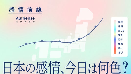 Authense法律事務所は、感情に敏感でありたいという思いから、”今”世の中が興味を抱いているニュース、社会感情についてAIで分析し、3時間おきにWEBサイトを更新しています。あなたの感情は、今は何色ですか?