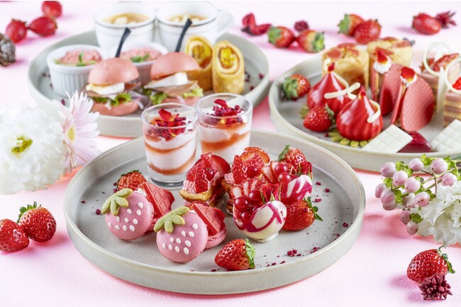 そのままでも美味しく、いちごをディップしても違う味わいが楽しめるホワイトチョコレートとマスカルポーネのクリーム、バッグに見立てたいちごのオペラ、ポップないちごをモチーフにしたいちごマカロン、ハートを半分に割った形に見えるルビーショコラといちご風味のバタークッキーサンド、いちごをイメージしたあまおうムースなど写真映えするスイーツを9種類お楽しみいただけます。セイボリーは、ロビーラウンジのグランドメニューからおすすめのマンハッタンクラムチャウダーをトマトソースでアレンジしたスープやセロリラブとベーコンココットグラタンなど寒い冬に温まっていただけるホットメニューもご用意いたしました。