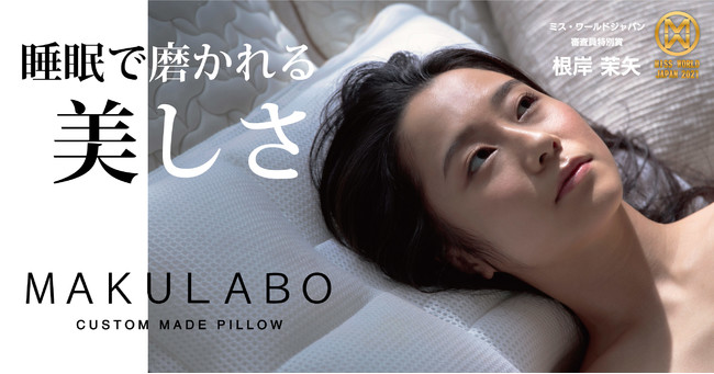 オーダーメイド枕の店「まくらぼ」(運営:Futonto株式会社 本社:東京都町田市 代表取締役社長:齊藤 淨一 以下、まくらぼ)の全国各店舗では、2月8日(火)より「ミス・ワールド2021」審査員特別賞 根岸茉矢さんによる、新しいまくらぼブランドタペストリーを展開いたします。