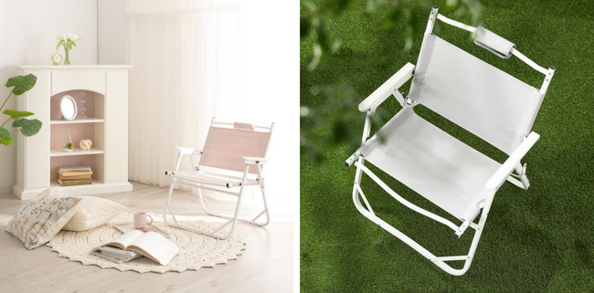 お部屋の中でも外でもかわいく快適に使えるデザインの折りたたみ式チェア