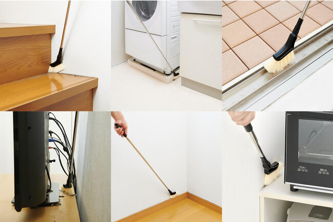 低い位置にある階段や巾木、狭くて届かないTV裏や、洗濯機、冷蔵庫、レンジなどのあらゆるすき間の汚れやホコリをラクラクお掃除!