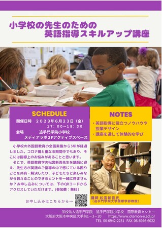 低学年次からの英語教育に力を入れる追手門学院小学校(大阪市中央区、校長:井上 恵二)は、2020年度の学習指導要領改訂で必修化された小学校の「外国語教育」のさらなる発展と指導力向上を目指し、小学校教諭を対象にした「小学校の先生のための英語指導スキルアップ講座」を6月23日に開催します。