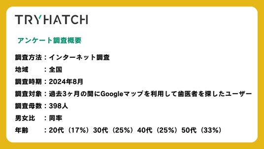 調査対象:過去3ヶ月以内にGoogleマップを活用して歯医者探しをしたユーザー