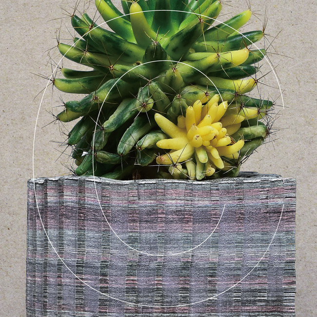 似て非なるこの二つが共棲を始める。生命力溢れる植物が古紙に息吹を与え、鉢は植物の生長に寄り添い形を変える。