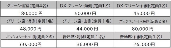 ※DXグリーン山側、グリーン席山側、普通席・海側、普通席・山側は、2名分の席を1名さまでご利用いただけます