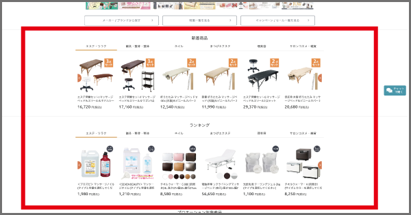 サイトTOPの「新着商品」「ランキング」「イチオシ商品」に検索エンジンを活用し、膨大な商品情報の中から最適な商品を自動的にピックアップし表示することが可能です。