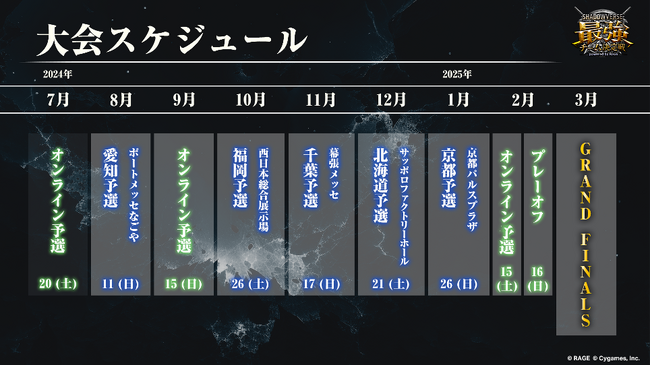 今回新たに各予選のスケジュールが決定し、オフライン初回開催となる8月の愛知予選大会のエントリーを受付開始いたします。その他の予選のエントリー情報は後日発表いたします。