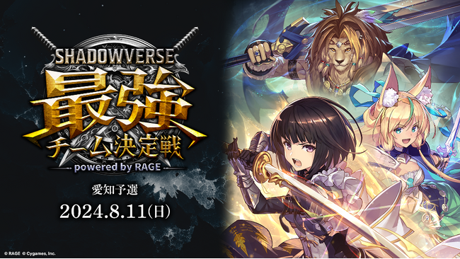 国内最大級のeスポーツエンターテインメント「RAGE(レイジ)」は、対戦型オンラインTCG『Shadowverse(以下、シャドウバース)』の新しい大会「RAGE Shadowverse 最強チーム決定戦」の詳細スケジュールと8月に開催する愛知予選のエントリー開始をお知らせいたします。
