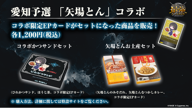 さらに、『Shadowverse』×『名古屋名物みそかつ 矢場とん』とのコラボ商品の販売が決定!描き下ろしコラボEPカードがセットになった商品を2種類販売いたします。※事前決済制、当日引き渡し