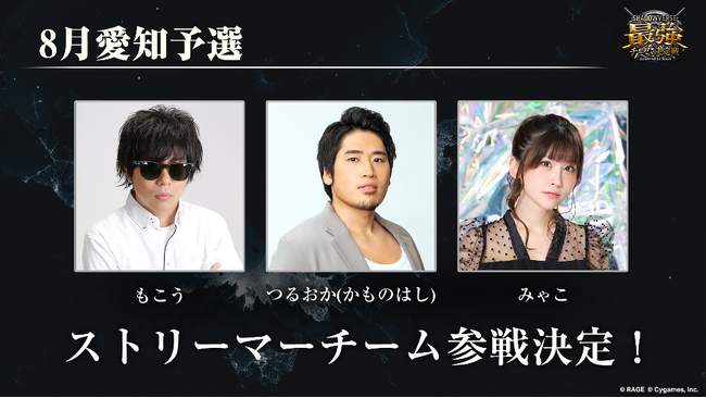 愛知予選では、もこう、つるおか(かものはし)、みゃこという豪華なメンバーで構成されたストリーマーチームの参戦が決定しました。さらに3名が出演する特別番組も8月3日(土)に配信予定です。詳細は後日公開させていただきます。
