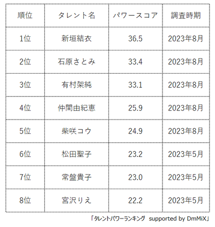 本ランキングは、2023年8月度に実施したタレント調査データ(一部過去実施データ)を利用し、タイトルに応じてランキング形式でまとめたものです。