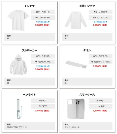 価格 :Tシャツ1枚1,100円(税込み)から ※プリント代込み、100枚以上まとめて割適用