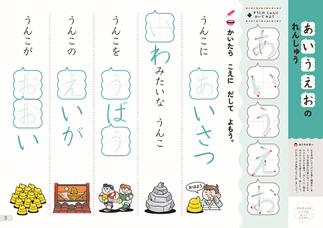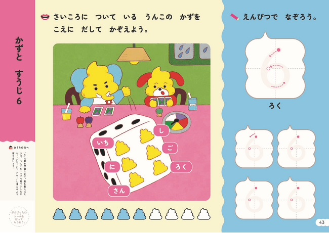すべての問題に「うんこ」が登場します。お子さまの興味・関心を引きつけ、主体的・意欲的な学習が期待できます。また、ページごとに作業内容やイラストが異なるので、最後まで飽きずにやり遂げることができます。