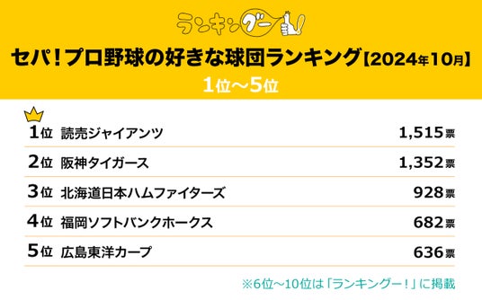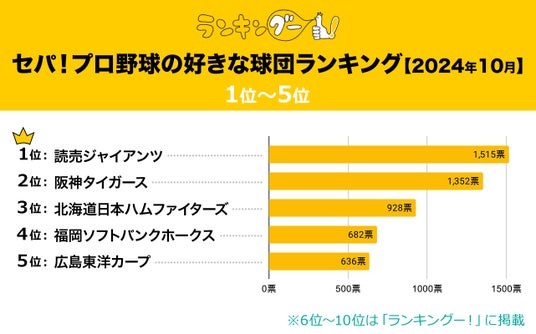 調査方法:株式会社CMサイトがインターネットリサーチした<セパ!プロ野球の好きな球団ランキング【2024年10月】>のアンケート結果を集計。