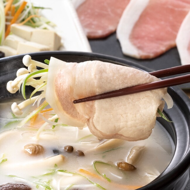 【!】季節の野菜として、“椎茸”が新たに仲間入り!えのき・木耳(きくらげ)・しめじと一緒に、秋の風味たっぷりの、すき焼き風しゃぶしゃぶをお楽しみいただけます。