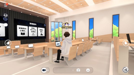 さらに、個人でも受験できるだけでなく、メタバースならではの「コミュニティ機能の提供」により、生徒個人が「より主体的に、褒めあい、ライバルを見つけることもできる、学校以外のコミュニティの提供」の実現を目指しており、メタバース空間を利用した交流・学習・テスト受験環境などを設けています。