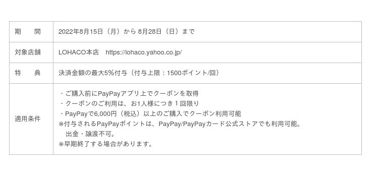 (※1)本キャンペーンはLOHACO本店のみが対象となります。LOHACO PayPayモール店は対象外です。