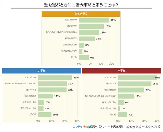 塾を選ぶうえで多くの人が大事だと思っていることは「先生と合うか」でした。