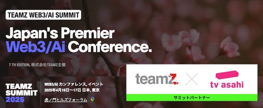 株式会社テレビ朝日(本社:東京都港区、代表取締役社長:篠塚 浩、以下 テレビ朝日)は、2025年4月16日(水)&17日(木)に虎ノ門ヒルズフォーラム(東京都港区)にて開催される株式会社TEAMZ(本社:東京都港区、CEO:楊 天宇)らが主催する「TEAMZ WEB3 / AI SUMMIT 2025」のサミットパートナーに昨年2024年に引き続き参画します。