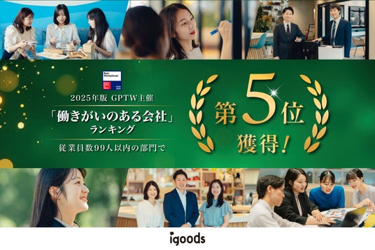 オリジナルグッズを製造するアイグッズ株式会社(本社:東京都渋谷区)は、Great Place to Work(R) Institute Japan(GPTWジャパン)が運営する「2025年版 日本における働きがいのある会社」ランキングにおいて、参加企業657社の中から従業員数25~99人部門 において第5位を獲得しました。