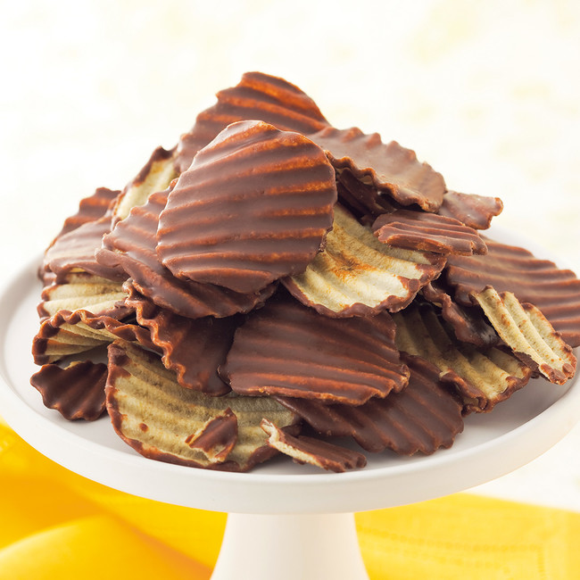 ポテトチップとチョコレート、意外な組み合わせから生まれた大ヒットのおいしさ。 パリッとした軽快な食感のポテトチップの片面に、口どけの良いチョコレートをコーティングしました。 チョコレートの甘さとポテトチップの塩味が織りなすハーモニーをお楽しみください。