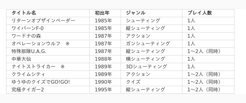 「ナイトストライカー」をはじめ、アーケード作品10タイトルを収録。