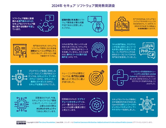 Linux Foundation Research (LF Research) が Open Source Security Foundation (OpenSSF) と協力して作成した調査レポート「Secure Software Development Education 2024 Survey」の日本語版「2024年セキュア ソフトウェア開発教育調査」が公開されました。