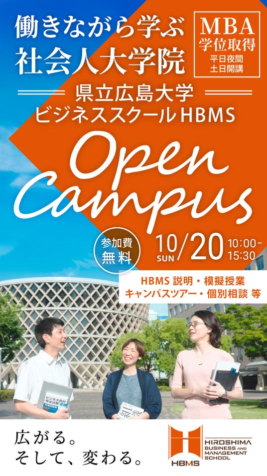 HBMS (県立広島大学大学院経営管理研究科)は、2年間でMBA(経営修士)の学位が取得できる中国地方唯一の「働きながら学ぶ社会人のためのビジネススクール」です。