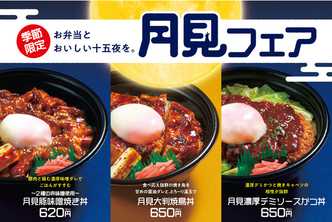 このたび「ほっともっとグリル」では、温玉を月に見立てた商品が3種類登場する 「月見フェア」を開催します。甘めの醤油だれを絡めた大きな鶏もも肉を大胆に乗せた『月見大判焼鳥丼』650円、とんかつに濃厚なデミソースをかけた『月見濃厚デミソースかつ 丼』650円、豚肉とコクのある味噌だれでご飯がすすむ 『~2種の赤味噌使用~月見豚味噌焼き丼』620円を9月2日(金)より新発売 いたします。今年は仕様の異なる個性豊かな3種の“丼”をご用意しました。その日の気分に合わせて何度もお楽しみいただけます。