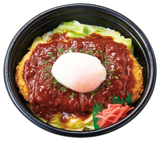 とんかつに濃厚なデミソースをたっぷりかけた、新たなかつ丼です。デミソースは牛すじや香味野菜を炊きだしたブイヨンに、オニオンソテーや香辛料を加えたコクのある味わいです。デミソースが染み込んだとんかつのしっとりとした食感と、ごはんの上に敷いた「焼きキャベツ」のシャキシャキとした食感がクセになります。
