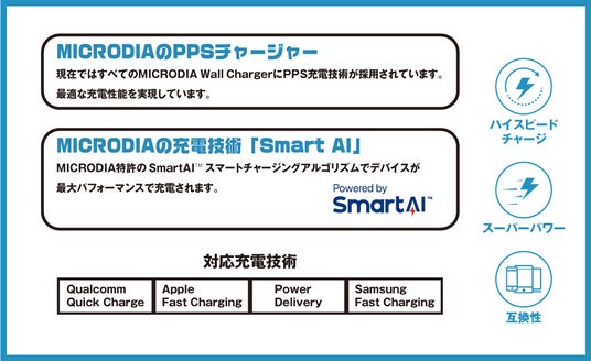 この技術はデバイスが必要とする電流と電圧を自動的に検出し、製品と充電装置の寿命を延ばします。