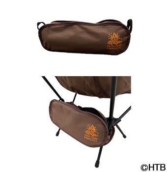 背面と収納バッグにはそれぞれ「ここキャン北海道」のロゴを刺繍であしらいました。