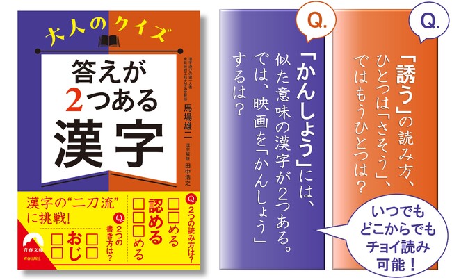 青春出版社(東京都・新宿区)は『大人のクイズ 答えが2つある漢字』(馬場雄二/著、田中浩之/漢字解説)を2月13日に発売いたしました。