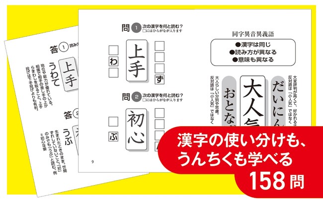 漢字の奥深さを楽しみながら、日常生活に役立つ漢字力が身につく!漢字クイズ158問。