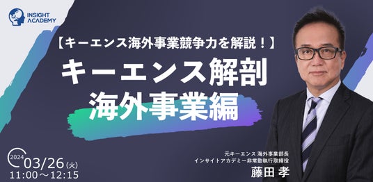 グローバル人材育成・研修業を手掛けるインサイトアカデミー株式会社(本社:東京都港区新橋、代表:金 珍燮)は、無料webセミナー「キーエンス海外事業競争力を解説!キーエンス解剖 海外事業編」を2024年3月26日(火)11:00より開催します。