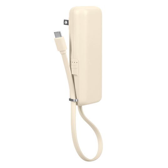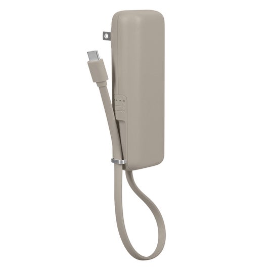 USB充電器にさらにケーブルが一体型になった、1台3役になるモバイルバッテリーです。