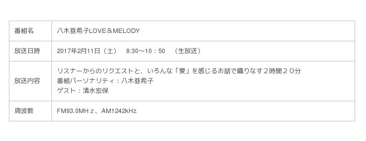 ●ニッポン放送「八木亜希子LOVE&MELODY」について