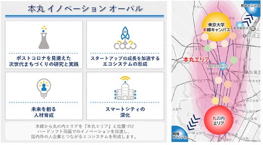 MEC-U Tokyo Labは、東京大学の主要拠点であり卓越した知が集積する本郷から、三菱地所が135 年にわたりまちづくりを推進する大手町・丸の内・有楽町までのエリア(以下、「本丸エリア」)に集積する企業等と東京大学との協業を通じて、次世代のまちづくりのあるべき姿の探求や、新たな産業の創出、社会課題解決の取り組みを推進することで、イノベーションが創出され成長するまちへの進化を目指しております。