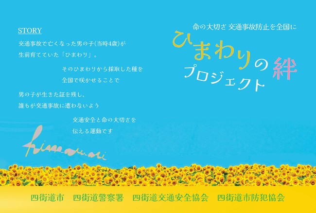 平成23年に交通事故で亡くなった男児が大切に育てていたひまわりの種を譲り受けました。全国で咲かせることで男の子が生きた証を残し、誰もが交通事故に遭わないよう、交通安全と命の大切さを伝えるプロジェクトに参加します。