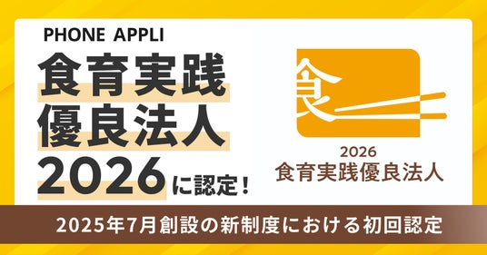 すべての企業をウェルビーイング企業にアップグレードすることを目指す、株式会社PHONE APPLI(本社:東京都港区、代表取締役社長:大林 春彦)は、2025年7月に創設された農林水産省の顕彰制度「食育実践優良法人顕彰制度」において、初年度の認定となる「食育実践優良法人2026」に選定されましたのでお知らせします。