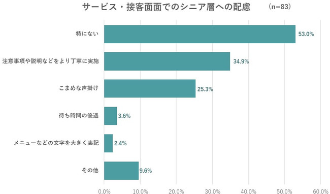 次に、シニア層に対してサービスや接客面で特別な配慮をおこなっているかについて尋ねました。