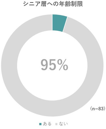 「ない」という施設が95%。一部、身体を使うスポーツ関連やレジャー関連の施設などで年齢制限を設けている施設はあったものの、ほとんどの施設がシニア層への年齢制限は特に設けていないようです。